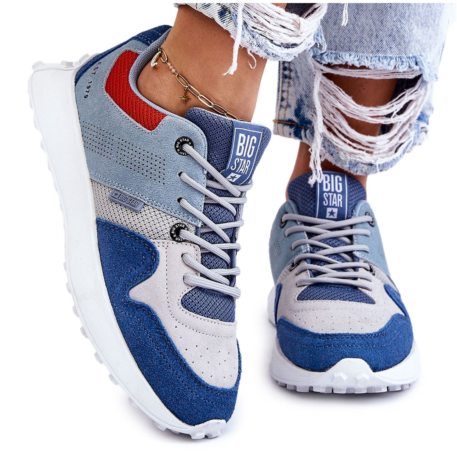 Elegante Big Star -Turnschuhe aus natürlichen Wildleder in Kombination mit luftigem Netzmaterial. Das Modell ist ideal für Spaziergänge durch die Stadt, Treffen mit Freunden oder Einkaufsmöglichkeiten - es kombiniert einen modischen Look mit Komfort des Gebrauchs.
