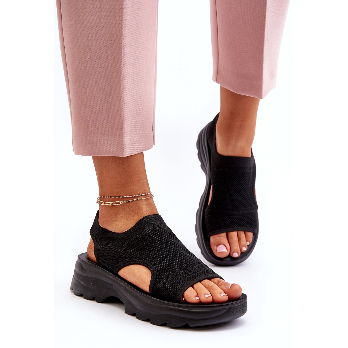 Sandalen haben eine praktische Insertion, die es einfacher macht, einzuziehen und abzunehmen. Die Höhe der Plattform von 5 cm betont die Figur und verleiht ihr Leichtigkeit und Eleganz.