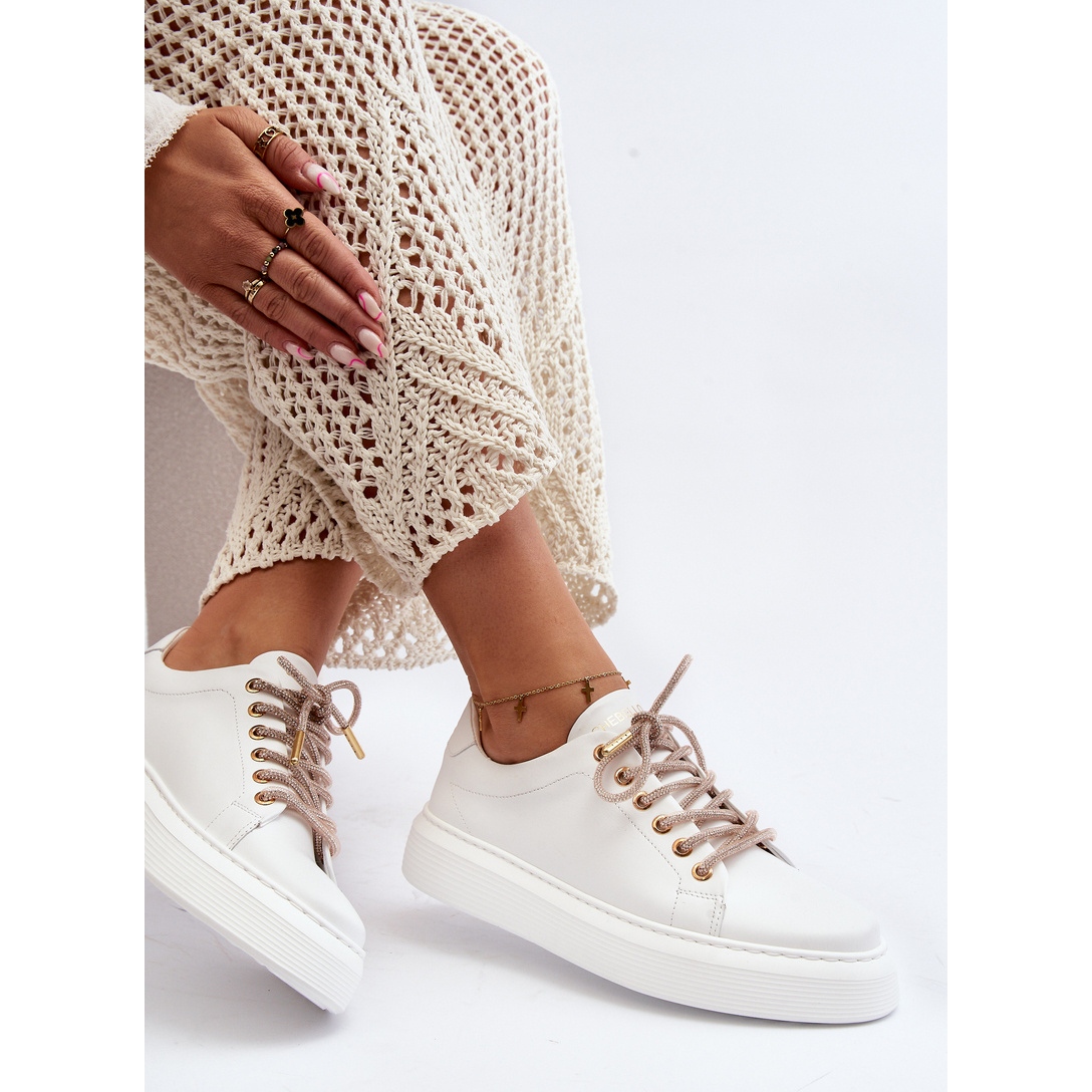 Die aus hochwertigem Naturleder gefertigten Schuhe sehen nicht nur elegant aus, sondern garantieren auch den ganzen Tag über Komfort. Die weiße Farbe des Schuhwerks macht es universell einsetzbar – diese Schuhe sind eine perfekte Ergänzung sowohl zu lässigen als auch zu eleganteren Stilen.