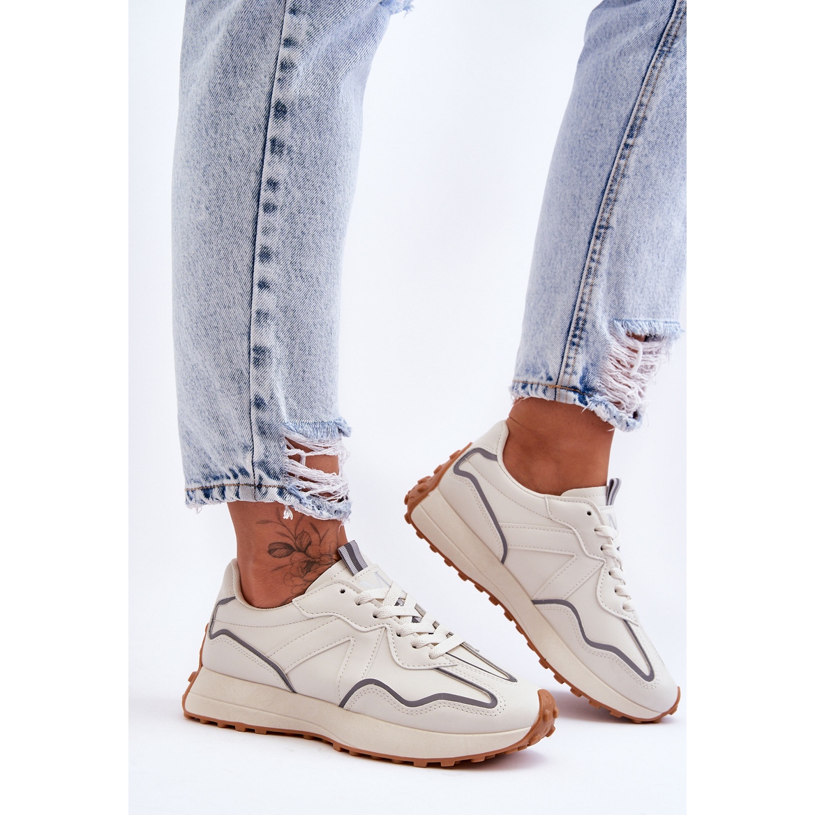 FJ1 Faro Frauen Sportschuhe-Bege und weiß mit silbernen Akzenten