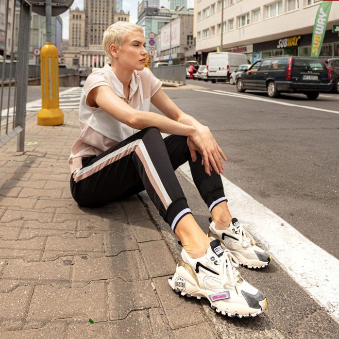 Die außergewöhnliche Schnürung mit doppelter Zunge in Schwarz- und Goldtönen verleiht ihnen einen einzigartigen Charakter, und die verstärkte Spitze und die Gummisohle in mehrfarbigen Tönen garantieren nicht nur ein ästhetisches Erscheinungsbild, sondern auch Tragekomfort. Dank des 4,5 cm dicken Sohlendesigns fühlen sich Ihre Füße den ganzen Tag über wohl.