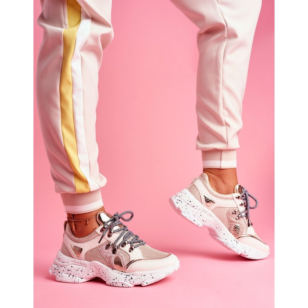 Das Obermaterial besteht aus einer Kombination aus ökologischem Leder und Mesh-Material und ist nicht nur ästhetisch, sondern auch atmungsaktiv. Ein zusätzlicher Akzent in Form von Glitzerstaub verleiht ihnen einen einzigartigen Charakter und macht sie zu einer perfekten Ergänzung sowohl zu sportlichen als auch zu lässigen Styles.