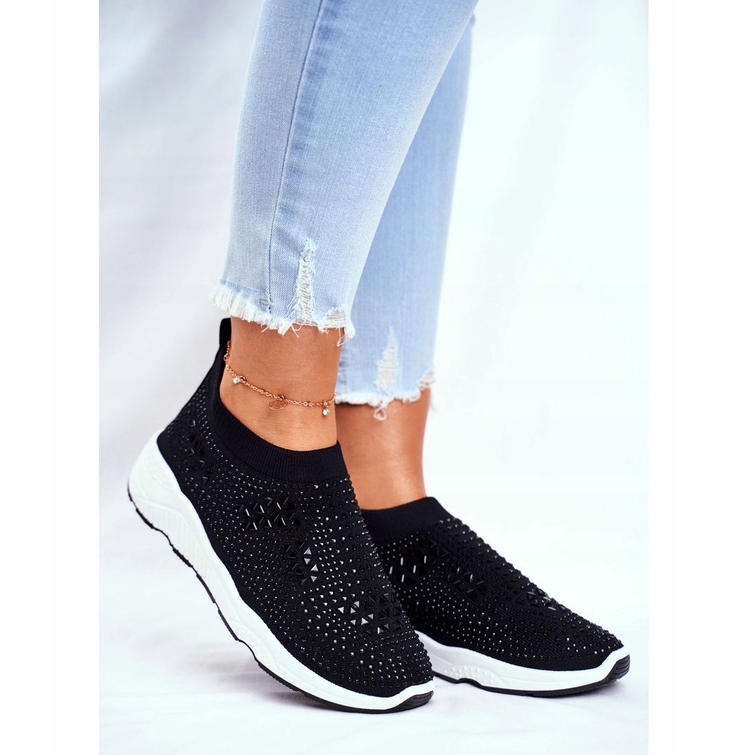 Leichte Damen-Sportschuhe mit schwarzen Strasssteinen Santol sind eine ausgezeichnete Wahl für Frauen, die Wert auf Komfort und einen modischen Look legen. Diese einzigartigen Schuhe bestehen aus luftigem Stoff, der auch bei intensiven Aktivitäten für ausreichende Belüftung sorgt. Ihre elegante schwarze Farbe und die dekorativen Strasssteine verleihen ihnen einen einzigartigen Stil, und das Gummiband an der Ferse erleichtert das Anziehen.