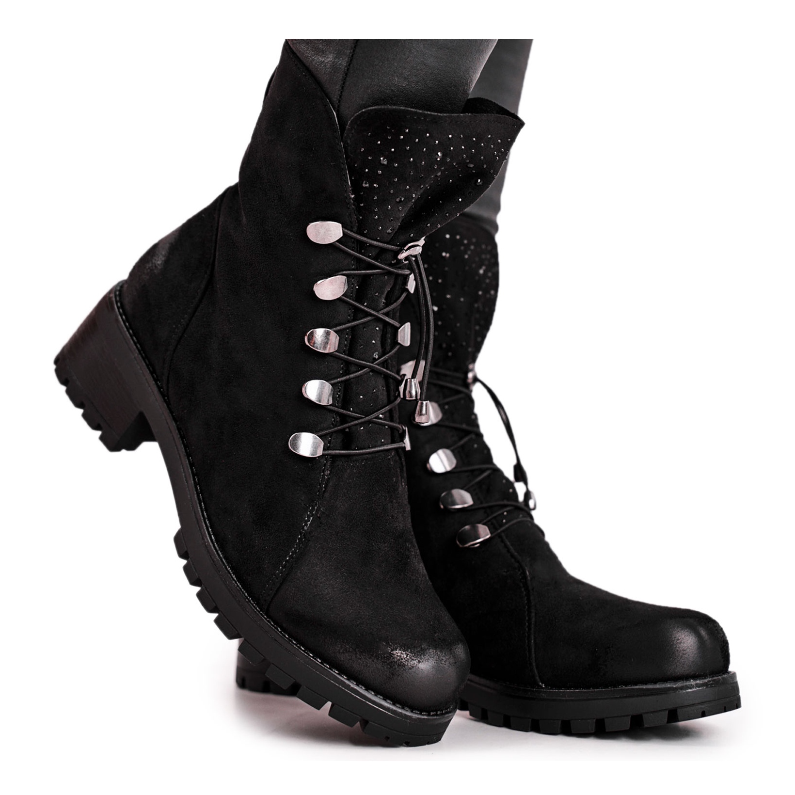 Wir präsentieren das neueste Modell der Damenstiefel von S.Barski – warme, schwarze Bipper-Arbeiterstiefel, die Stil, Komfort und Funktionalität vereinen. Diese einzigartigen Stiefel sind die perfekte Wahl für frostige Tage und bieten dank der Isolierung in Form einer angenehm anzufassenden Schuhdecke maximalen Schutz vor Kälte.