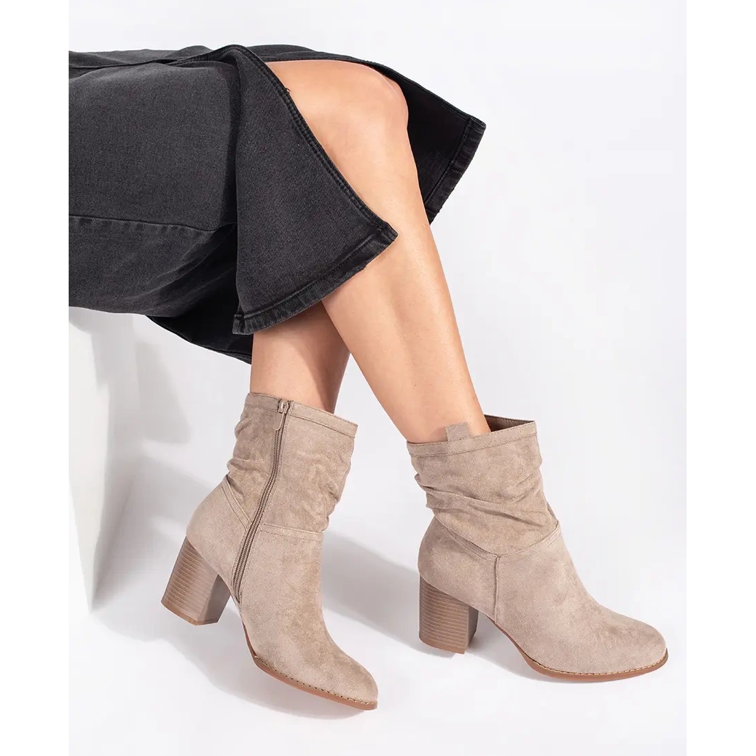 Wir präsentieren beige Suede -Frauenstiefel auf einem Beitrag einer seriösen Marke, die eine perfekte Ergänzung zu jeder Stylisierung darstellen! Dieses Modell, das in einem eleganten Schatten von Beige erhältlich war, bestand aus hochwertigem ökologischem Leder in Form von Wildleder, was ihm einen modernen und stilvollen Look verleiht.