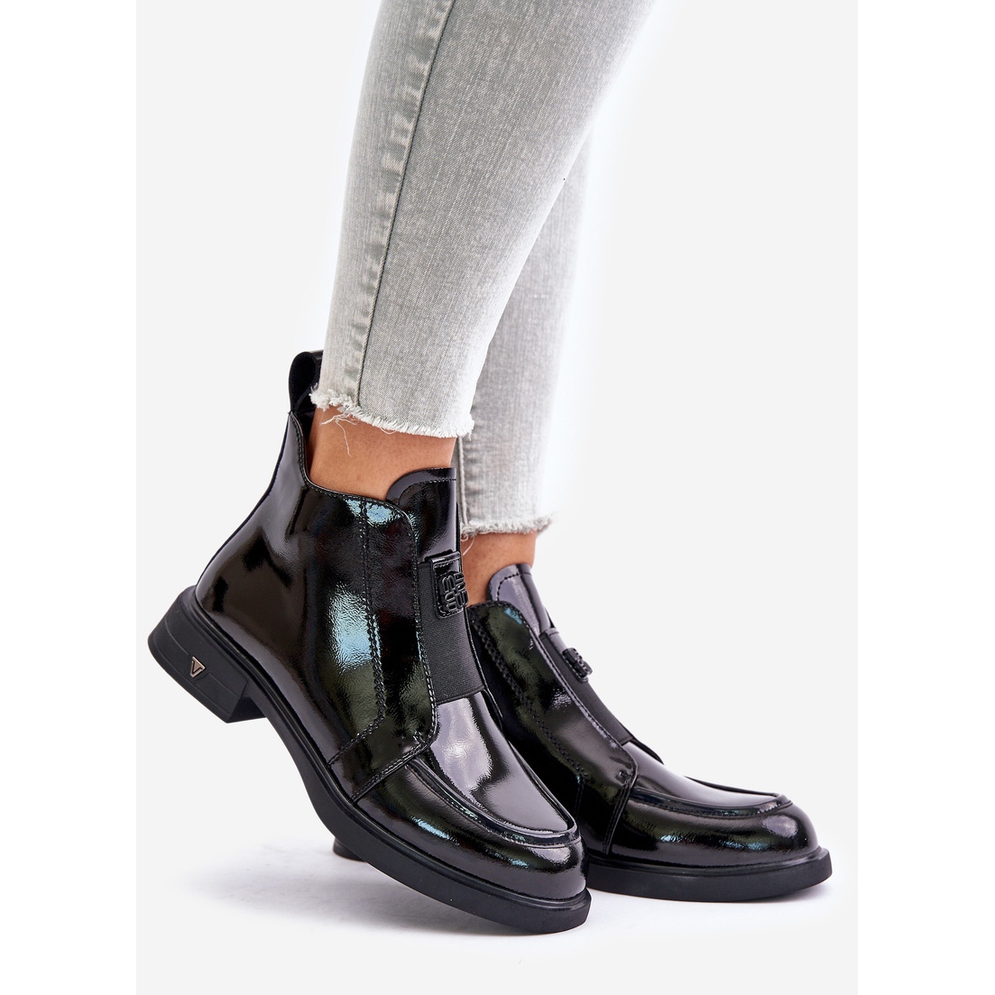 - Modell: Damen-Stiefeletten aus Lackleder