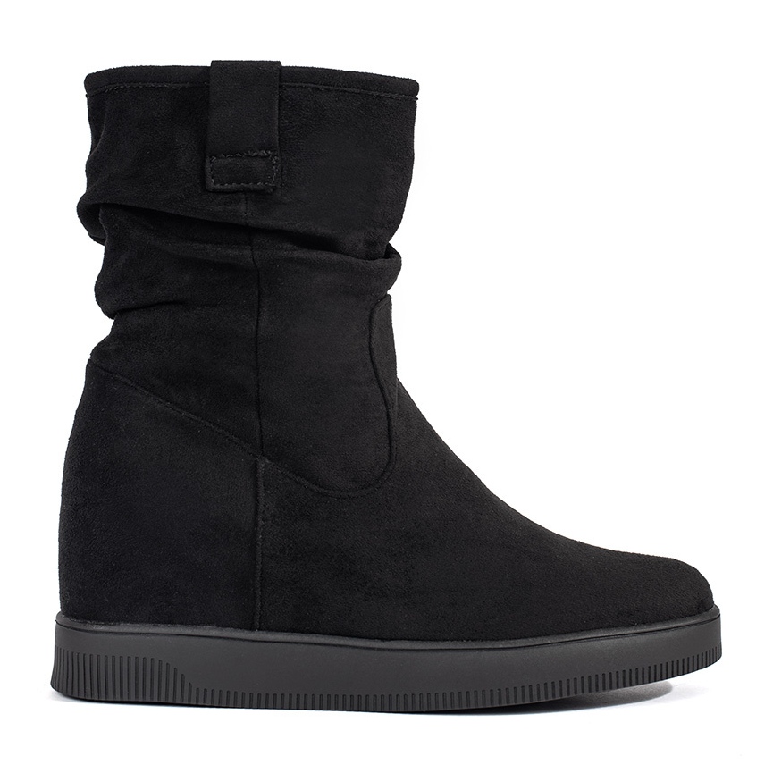 Details: Damen-Stiefeletten aus schwarzem Wildleder mit verstecktem Keilabsatz