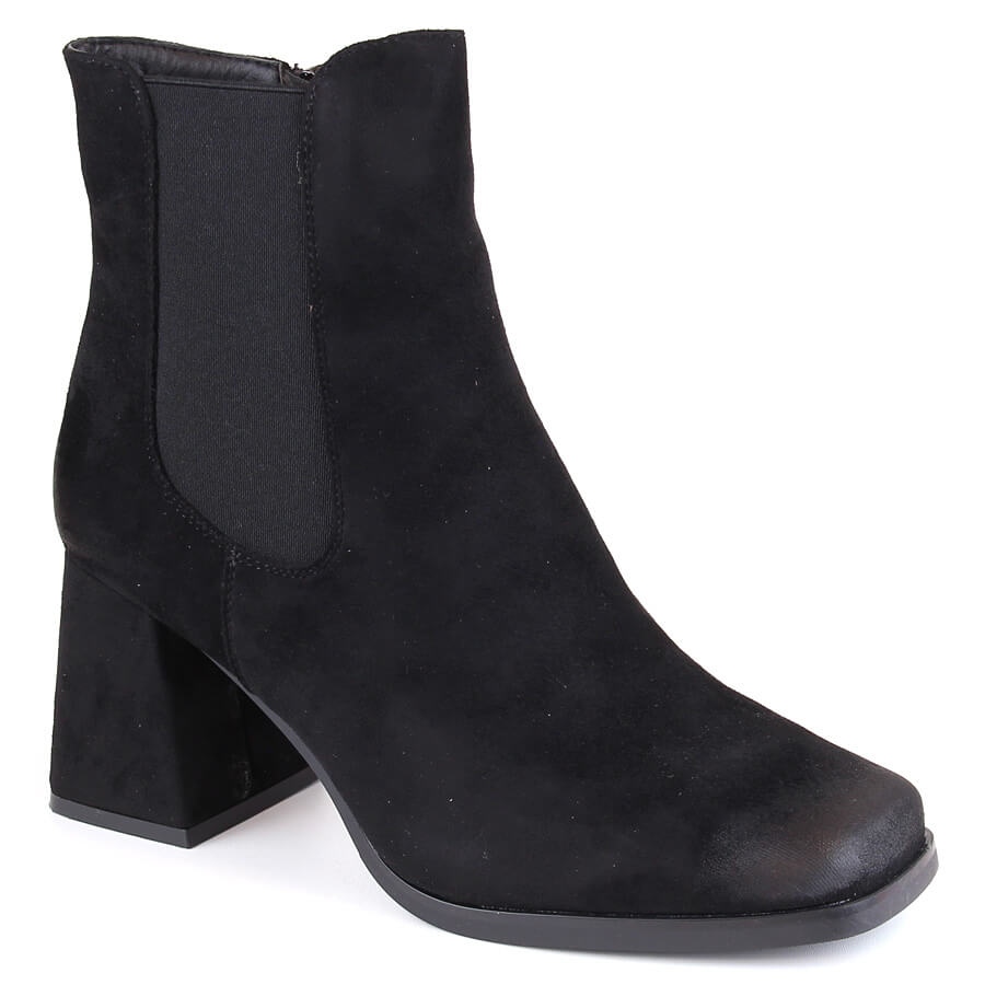 Wildleder Boots Potocki SZ12183 ist ein Vorschlag für Frauen, die Stil und Komfort schätzen. Sie bestehen aus ökologischem Wildlederleder in einer klassischen, schwarzen Farbe (zusammen mit der Sohle) und kombinieren einen modischen, quadratischen Zeh mit einem 6,5 -cm -Post -Heel - perfekt für alltägliche und formellere Stilisierungen.
