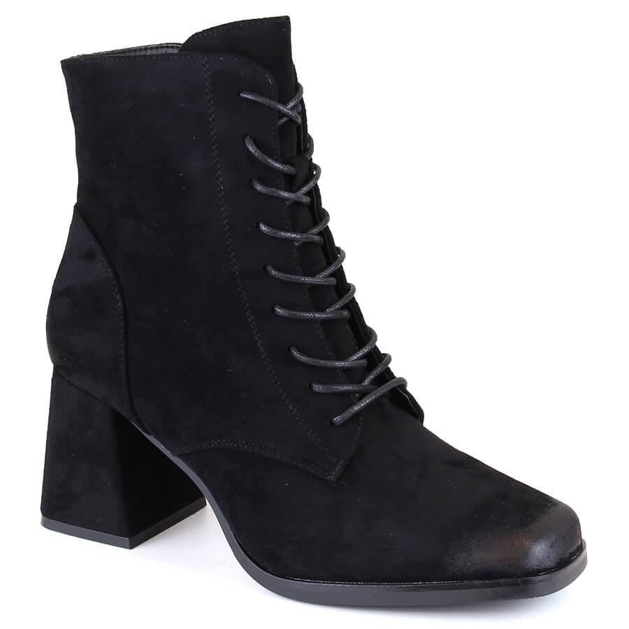 Details: Damen-Stiefeletten aus Wildleder mit Schnürsenkeln und Reißverschluss, schwarz Potocki SZ12185