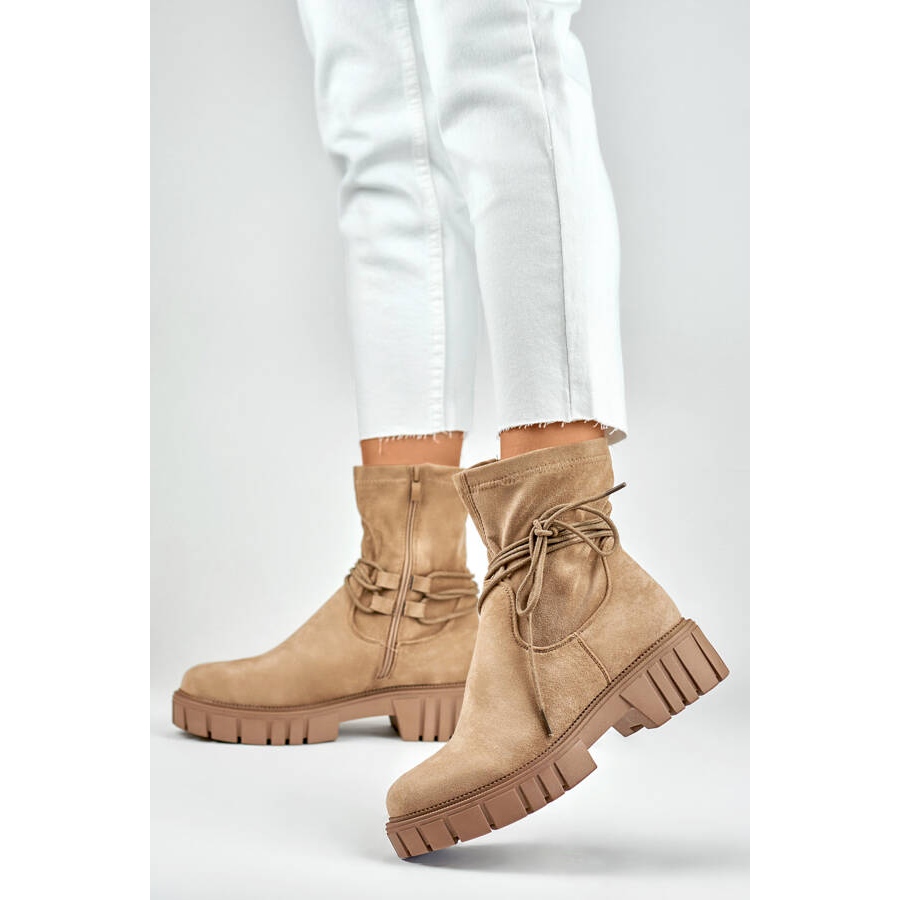 Details: Damen-Stiefeletten mit elastischem Schnür-Obermaterial, beige DE1127NU