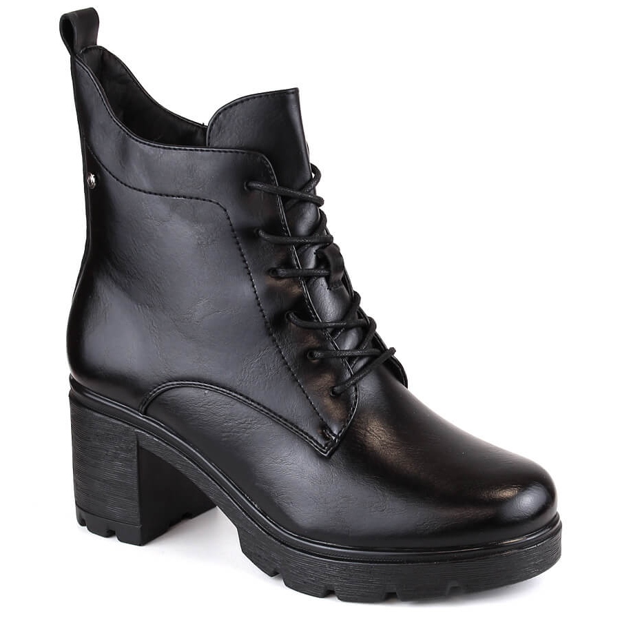 Die isolierten schwarzen Damenstiefeletten mit hohem Absatz und Plateau Potocki SZ12229 vereinen Eleganz, Komfort und Zweckmäßigkeit und sind das perfekte Schuhwerk für eine moderne Frau, die an kälteren Tagen sowohl Wert auf Stil als auch Wärme legt.