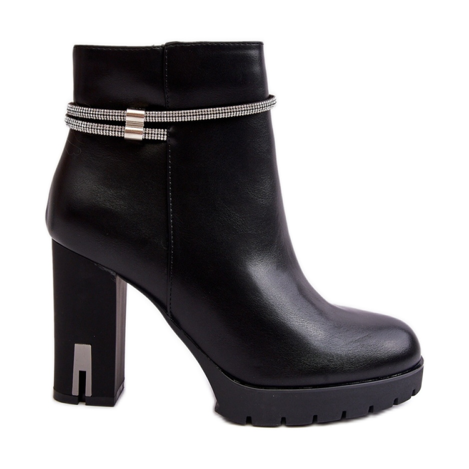 Details: Damen-Stiefeletten mit hohem Absatz und schwarzer Verzierung