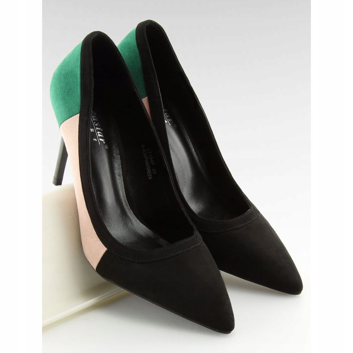 Wir präsentieren dreifarbige Damenpumps mit hohen Absätzen LT104P in den Farben Schwarz, Grün und Rosa. Dies sind einzigartige Schuhe, die sowohl für besondere Anlässe als auch für elegante Arbeitsstile perfekt sind.