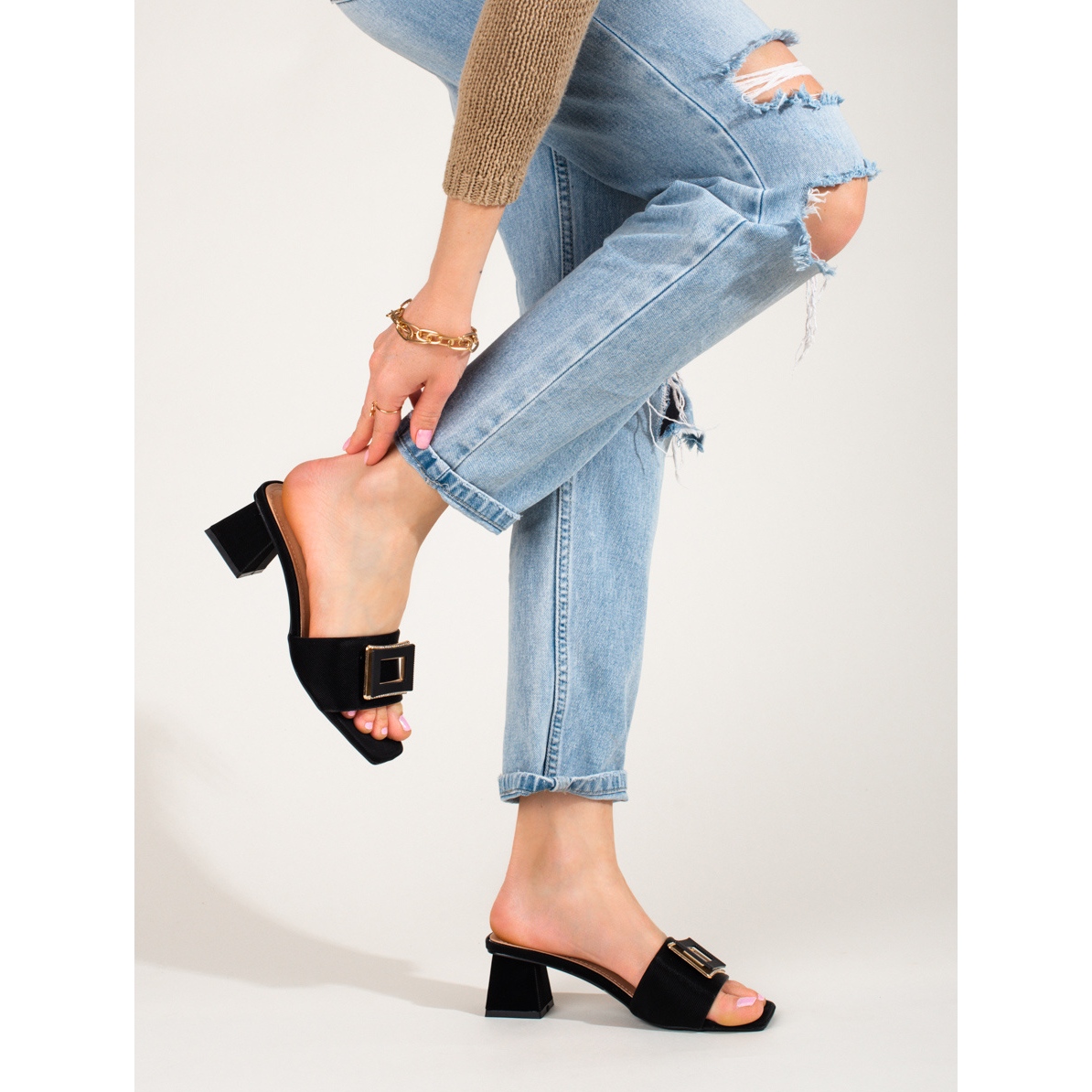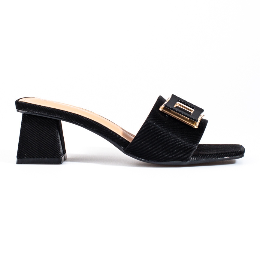 Details: Damen Stoff Hausschuhe auf einem niedrigen Absatz Shelovet schwarz