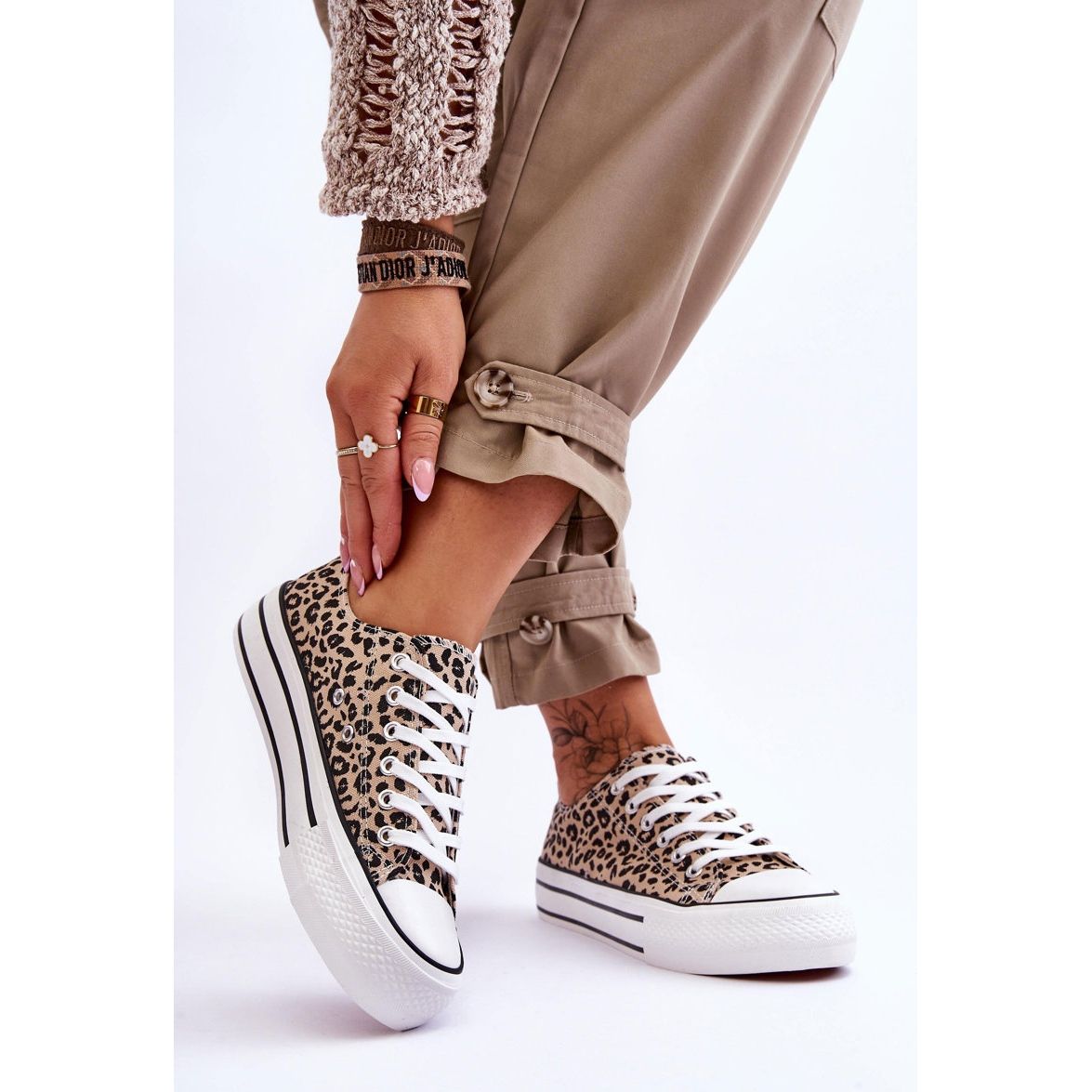 Entscheiden Sie sich für Komfort in einer modernen Variante und entscheiden Sie sich für beige-schwarze Sneakers auf der massiven Ember-Plattform – perfekt für jede Frau, die Wert auf Stil und Komfort legt.