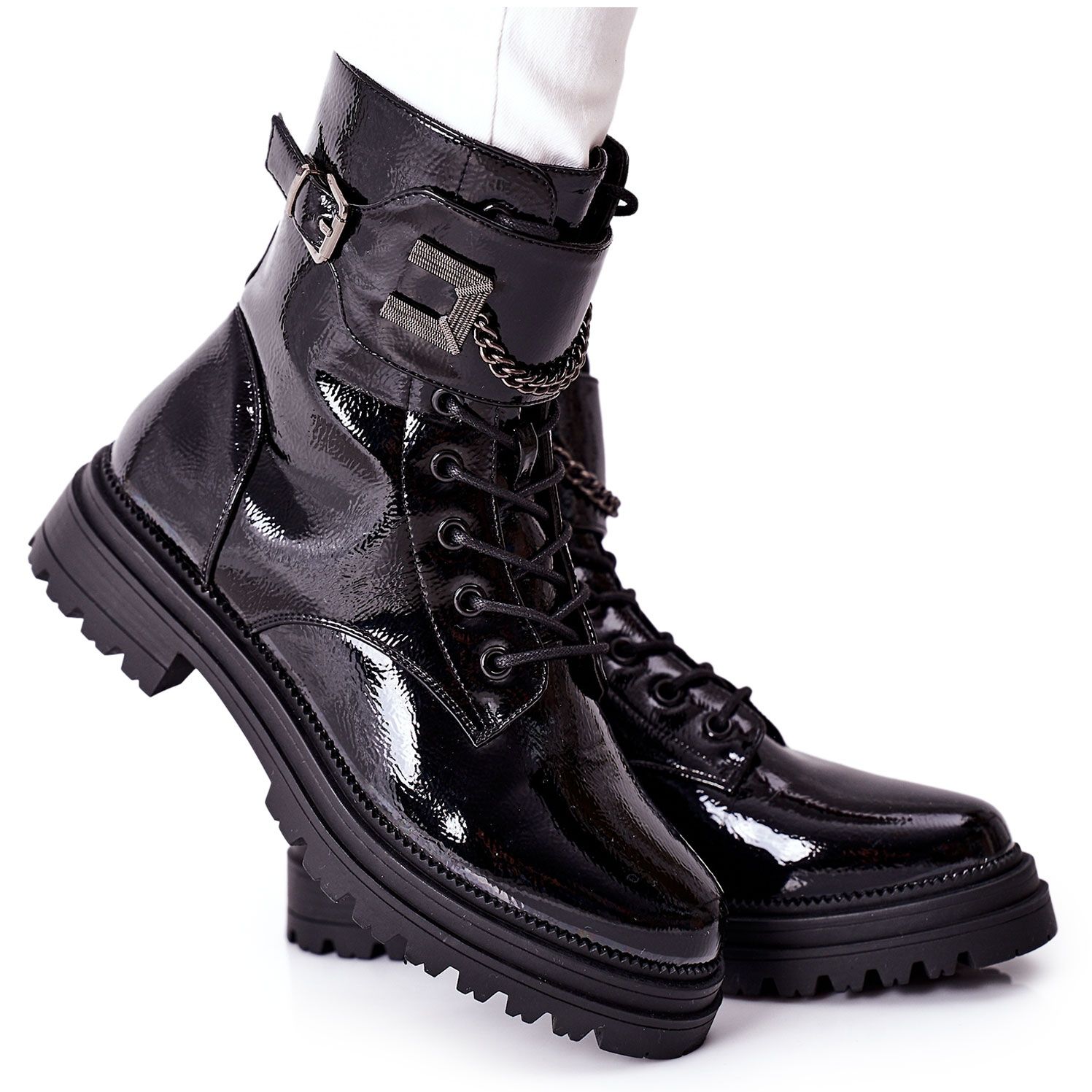 Diese aus ökologischem Lackleder gefertigten Stiefeletten fallen durch ihr glänzendes Finish auf, das jedem Styling Glanz verleiht. Durch den Einsatz eines seitlich eingenähten Reißverschlusses wird das Anziehen deutlich erleichtert, während die klassische Schnürung eine genaue Anpassung an den Fuß ermöglicht. Die mit weichem Fell isolierte Innenseite sorgt dafür, dass die Beine auch an den kältesten Tagen warm und bequem bleiben.