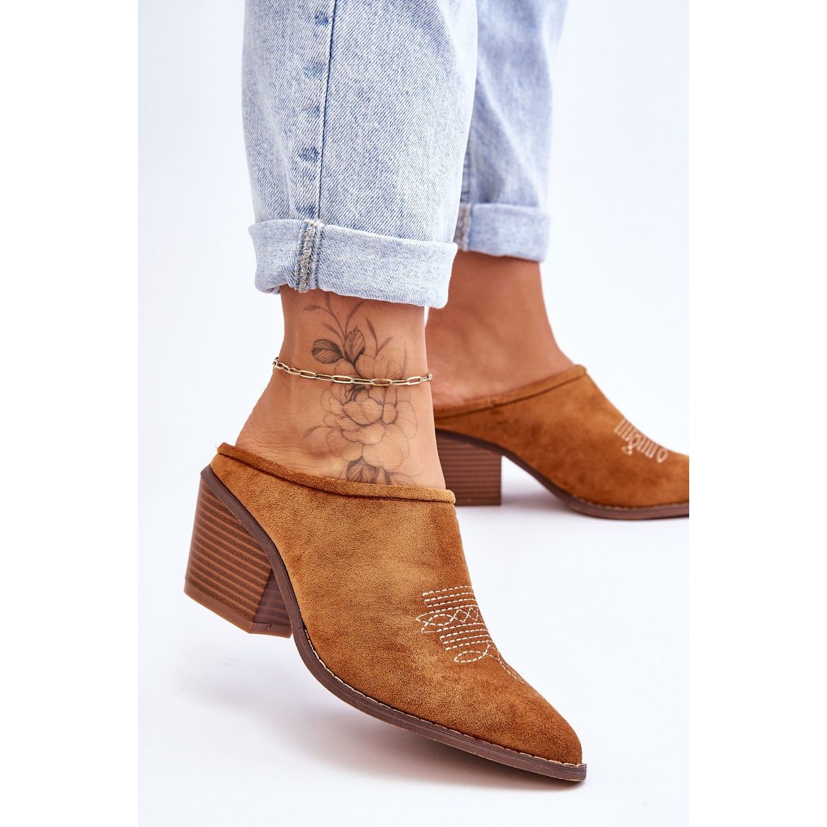 Wir präsentieren BM-Cowboy-Sandalen in einem Kamelton, die die perfekte Ergänzung zu jedem lässigen Styling sind! Sie bestehen aus hochwertigem Öko-Wildleder und sehen dank des gestickten Musters auf der Vorderseite äußerst stilvoll aus. Eine klassische spitze Spitze und ein massiver Blockabsatz von 6,5 cm machen dieses Modell nicht nur elegant, sondern auch sehr bequem.