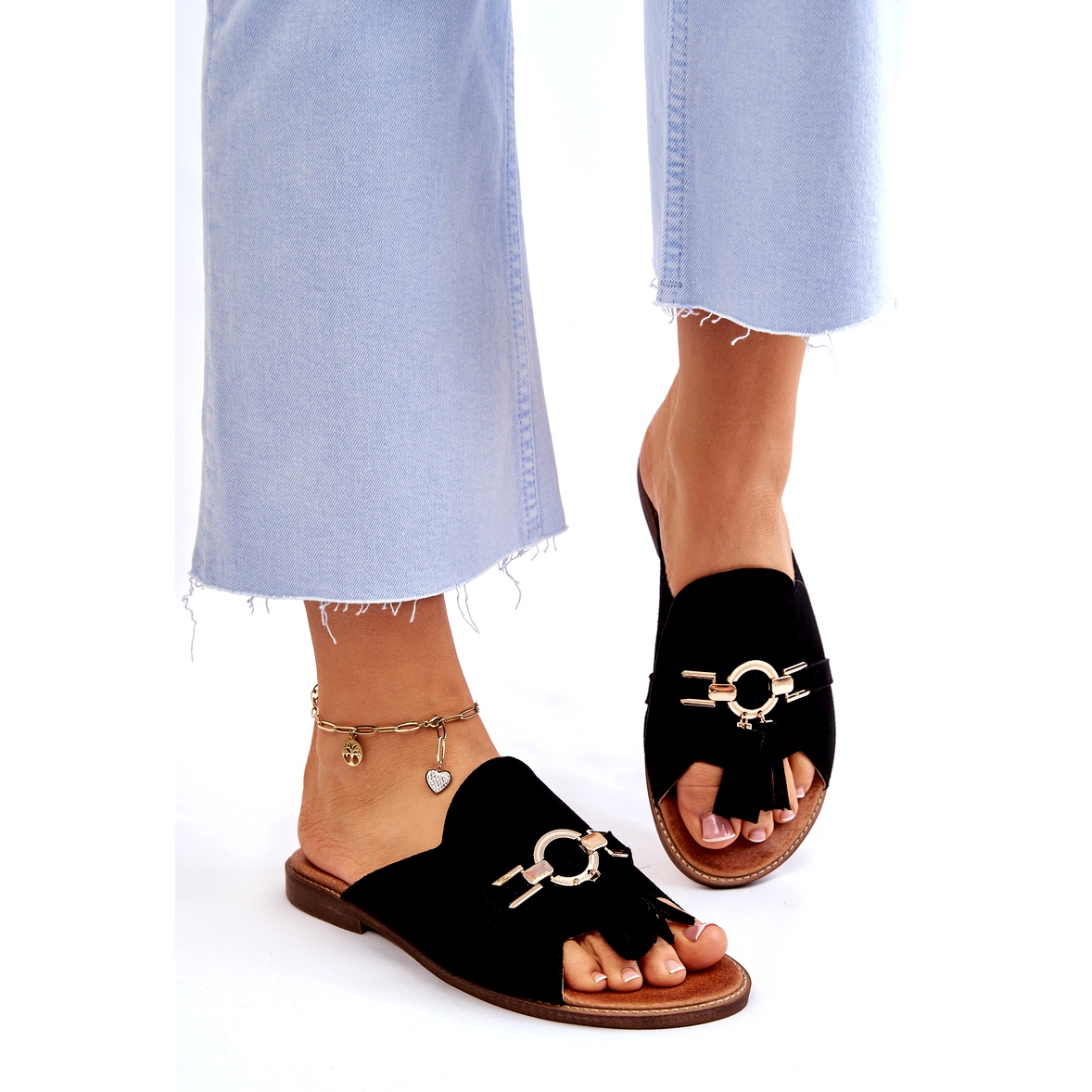 Hier sind die perfekten zehenstegsandalen, die Eleganz mit alltäglichem Komfort verbinden – Damen-zehenstegsandalen aus Wildleder von Lewski Shoes 3226 in Schwarz. Dieses Modell der polnischen Marke Lewski Shoes wird mit seiner klassischen Form und den subtilen Details sicherlich die Aufmerksamkeit auf sich ziehen.