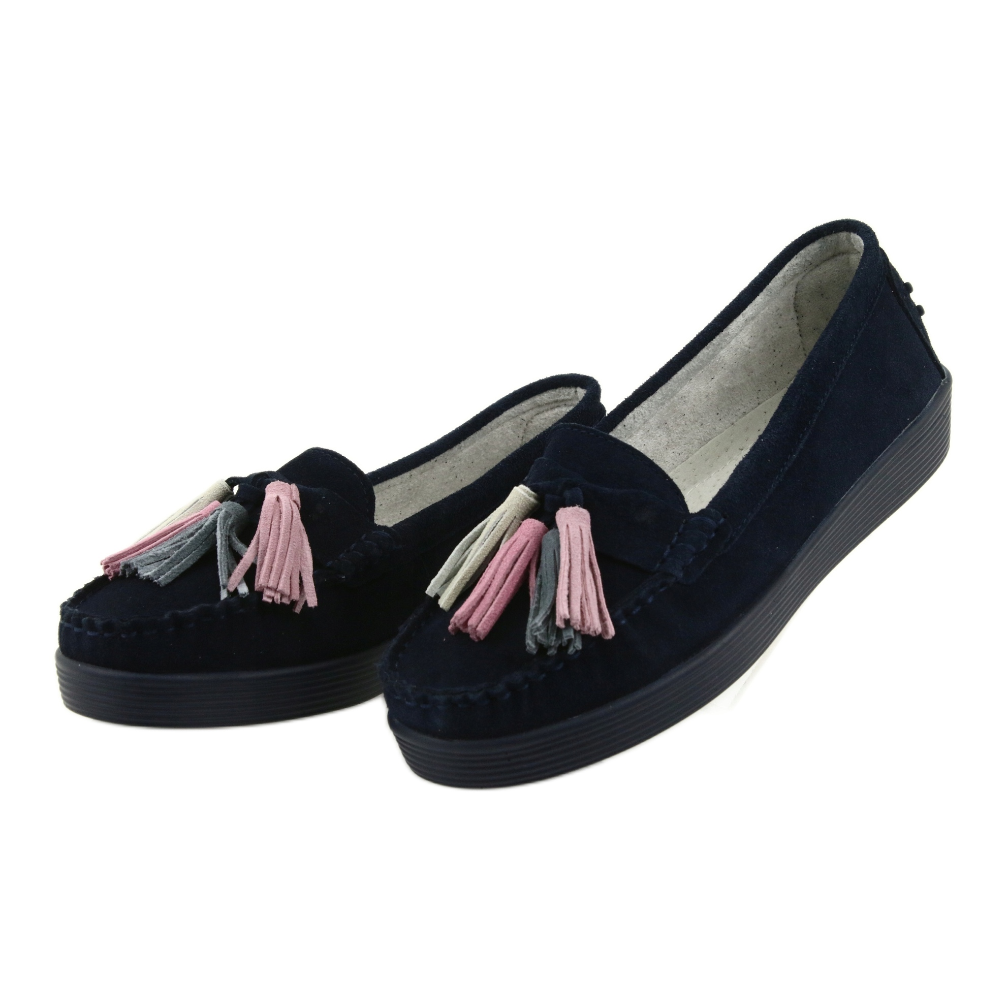 Die Damen-Wildledermokassins Filippo 661 in Marineblau sind die perfekte Wahl für Frühlings- und Sommertage. Diese eleganten Schuhe haben ein dezentes, aber attraktives Design, sodass sie problemlos in jeden Stil passen. Die an der Vorderseite des Obermaterials platzierten Fransen verleihen ihnen ein wenig Frische und Modernität, und das natürliche Wildleder, aus dem sie gefertigt sind, sorgt nicht nur für Ästhetik, sondern auch für hohe Qualität.