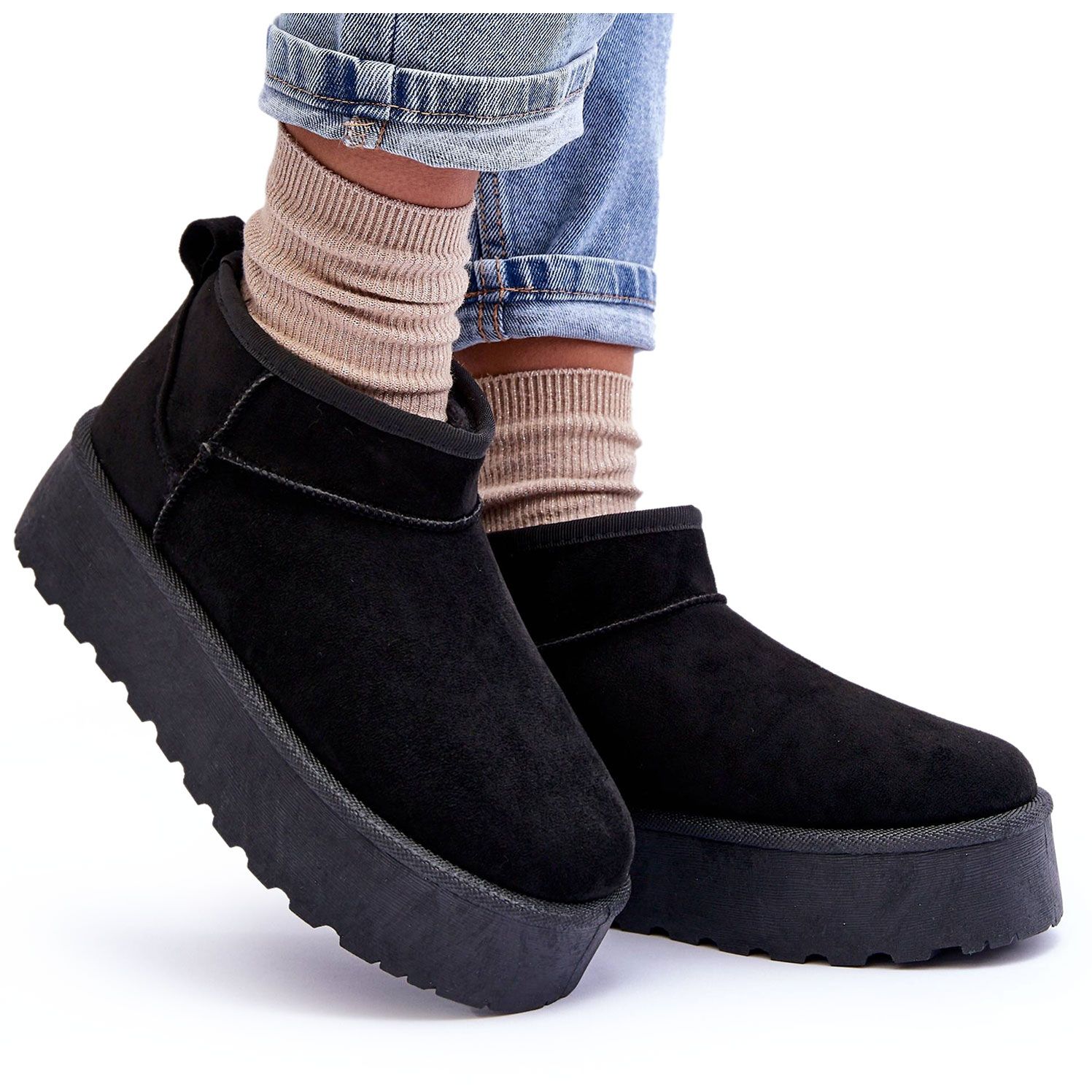 Das klassische Schneeballmodell passt perfekt in verschiedene Stylisationen - sowohl lässige als auch elegantere Outfits. Eine massive Plattform mit einer Höhe von 5 cm erhöht nicht nur Stil, sondern isoliert auch effektiv von einem kalten Boden. Dank der Einführung ist das Anlegen und Entfernen von Schuhen schnell und komfortabel.