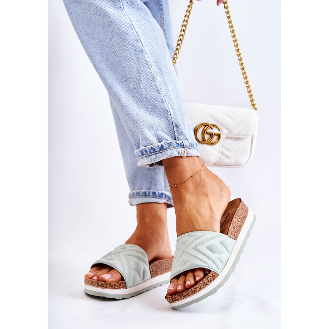 PG1 PG1 Damen-Wildlederhausschuhe auf einer massiven grünen Heritta-Plattform
