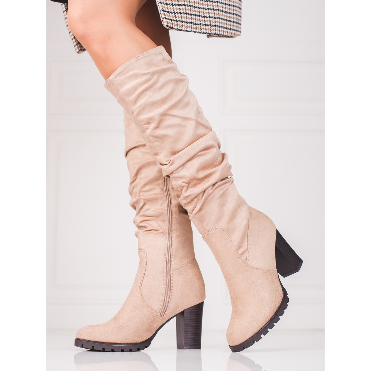 Damen-Wildlederstiefel mit hohen Absätzen von Vinceza sind eine Wahl für Frauen, die Wert auf eine Kombination aus Eleganz und Komfort legen. In dieser beigen Variante sehen sie phänomenal und zugleich dezent aus und passen zu einer Vielzahl von Stilen – vom Alltag bis zum besonderen Anlass.