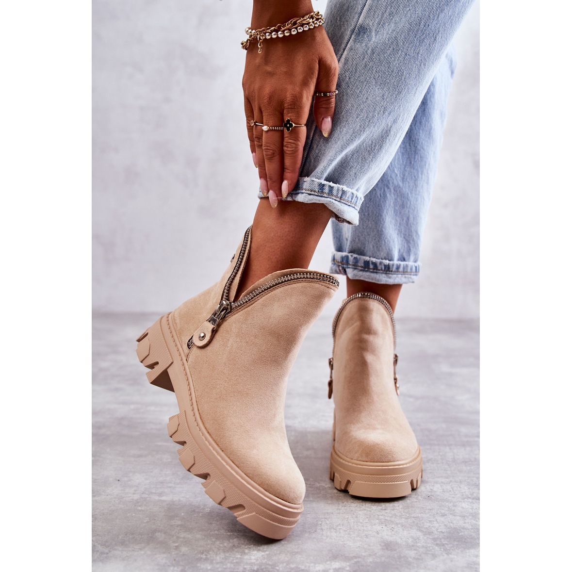 Die Stiefel zeichnen sich durch eine dicke Sohle aus, die nicht nur für Komfort sorgt, sondern auch einen Hauch von Eleganz verleiht. Sie haben einen 5 cm hohen, flachen Absatz, wodurch sie den ganzen Tag über angenehm zu tragen sind. Sie sind aus ökologischem Wildleder gefertigt und begeistern durch ihre Weichheit und Strapazierfähigkeit. Darüber hinaus sorgt das Textilfutter für ein angenehmes Tragegefühl.