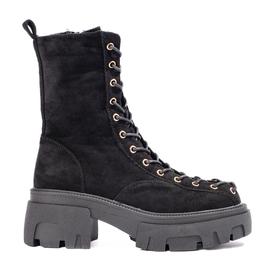 Details: Damen-Workerschuhe mit Schnürung aus schwarzem Wildleder