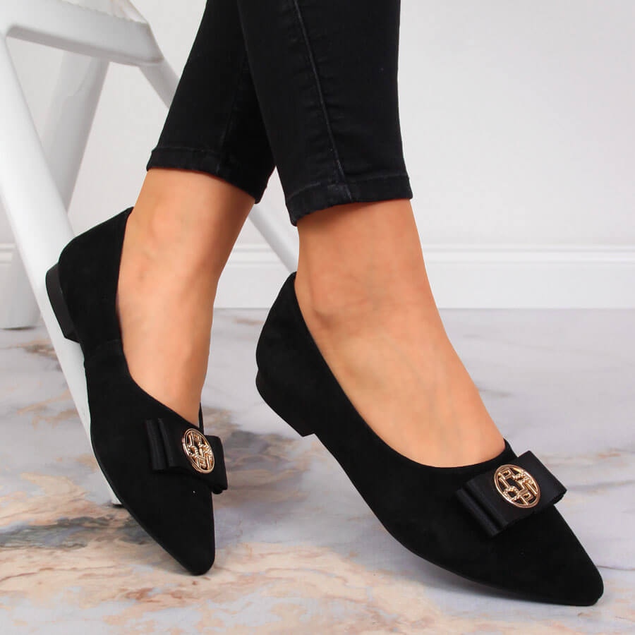 Filippo Damenballerinas aus Leder mit spitzem schwarzem Filippo