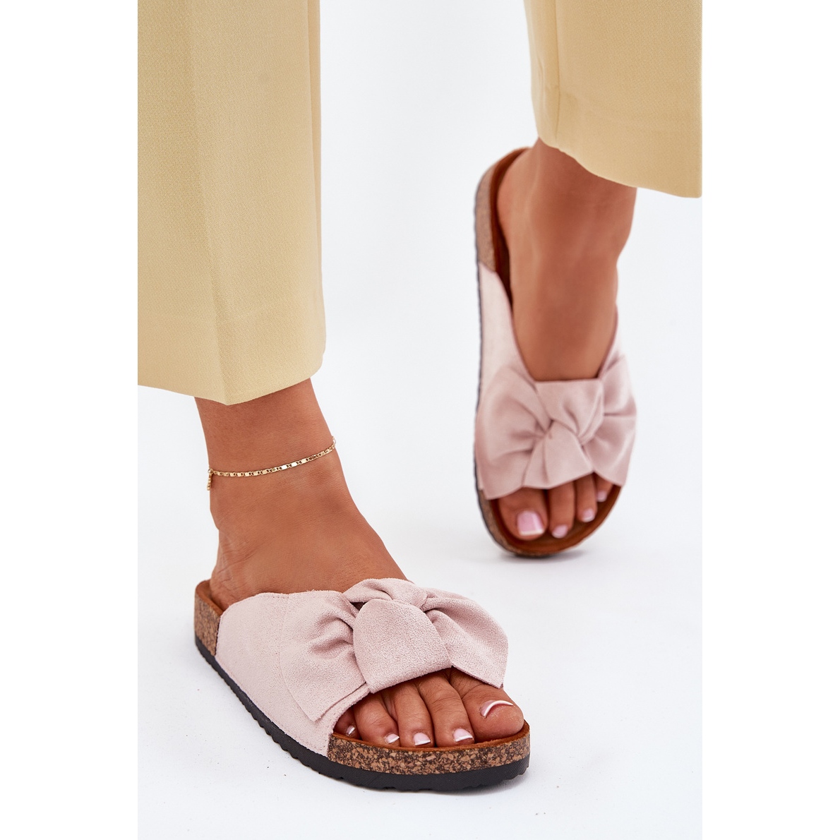 Details: Damenflip Flops auf der Korksohle mit einem hellrosa Bogen