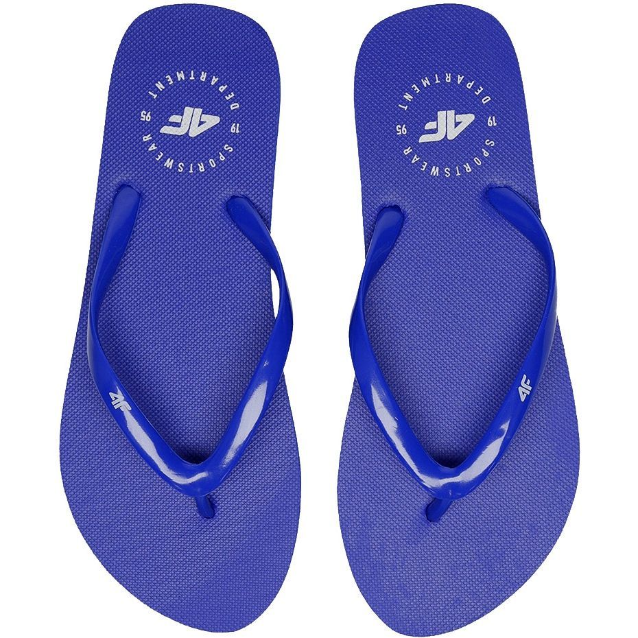 4F H4L20 KLD005 -Klappen in Kobaltfarbe ist ein Vorschlag für Frauen, die nach Komfort und einem einfachen Sommerdesign suchen. Gummistreifen garantieren Haltbarkeit und gute Passform, und die leichte Eva -Schaumsohle absorbiert jeden Schritt - perfekt für den Strand, den Gehen oder den täglichen Gebrauch an wärmeren Tagen.