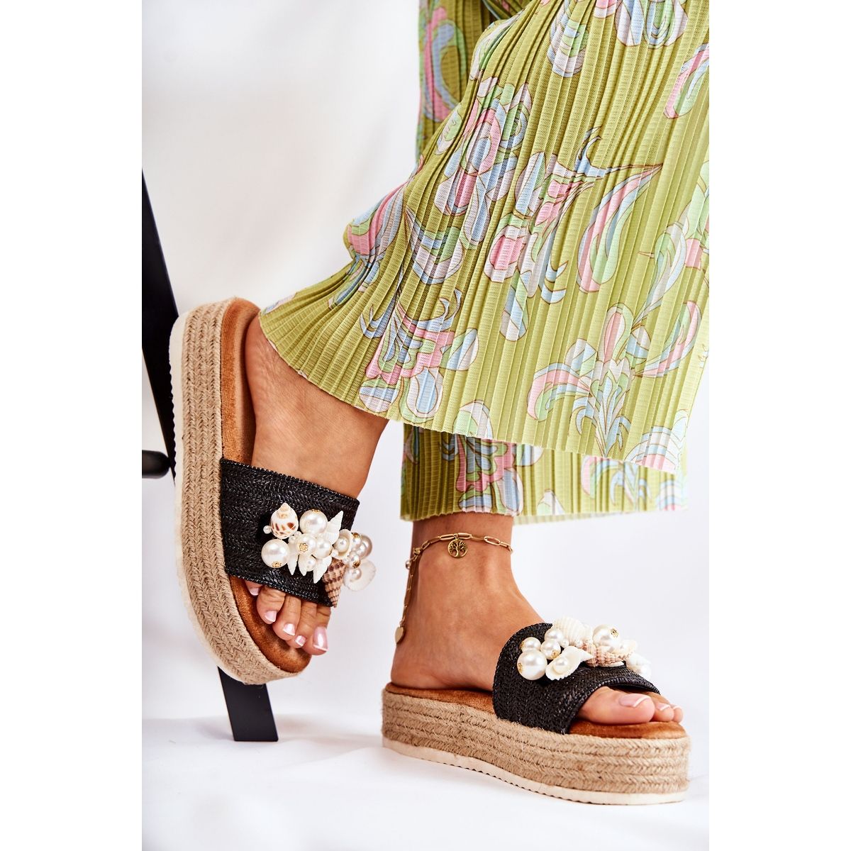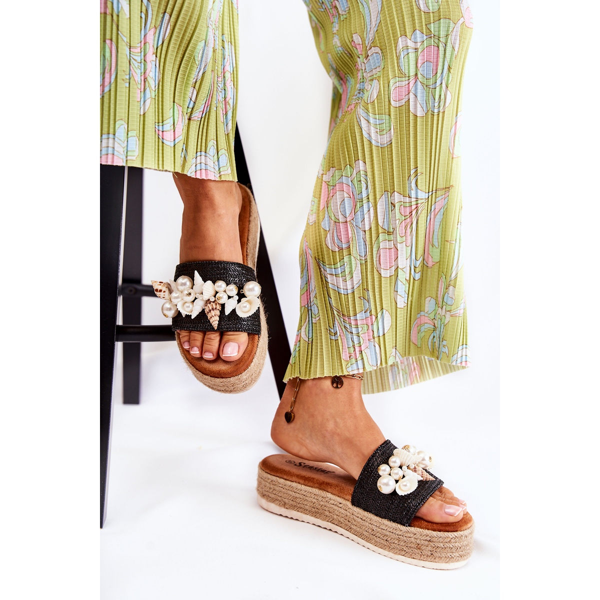- Modell: Damenhausschuhe auf der Plattform mit Muscheln
