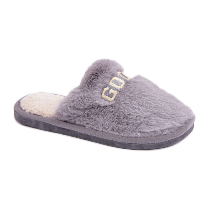 Dieses Modell zeichnet sich durch ein modernes Design aus, das mit einer stilvollen Inschrift dekoriert ist und ihm jugendliche Energie verleiht. Ihre universelle Farbe lässt sie gut mit verschiedenen hausgemachten Stilisierungen einfügen, und der weiche Pelzeinsatz sorgt für jeden Schritt maximal Komfort. Darüber hinaus garantiert ein leichtes 1,5 cm hoher Sohle Stabilität und Komfort, ideal für den täglichen Gebrauch zu Hause.