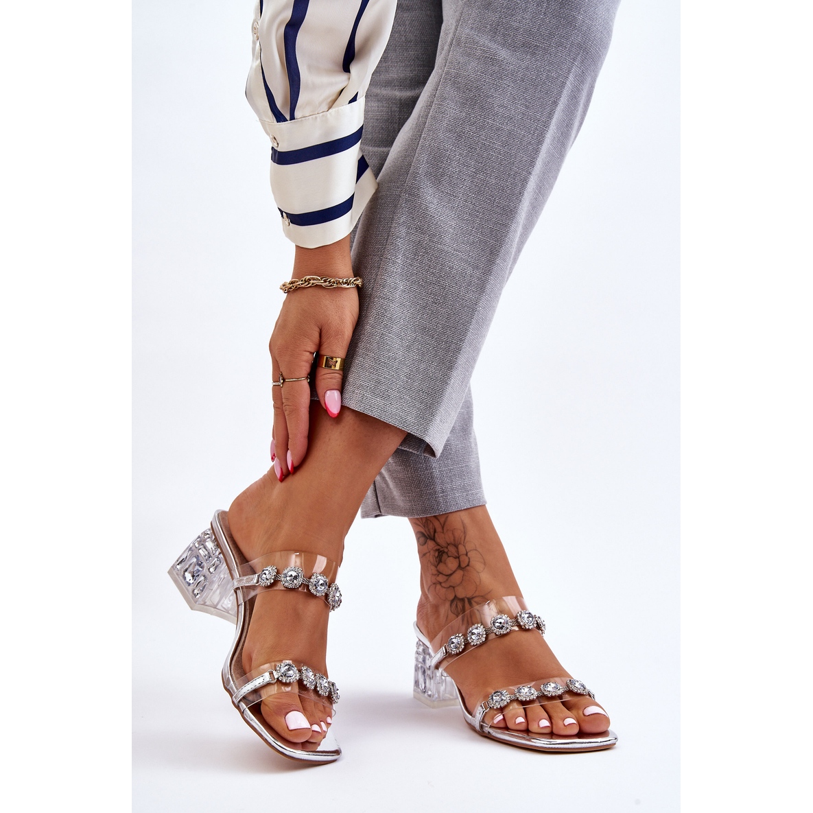 S.Barski S.Barski Damenhausschuhe mit dekorativen Zirkonen Silber Leyla silber-