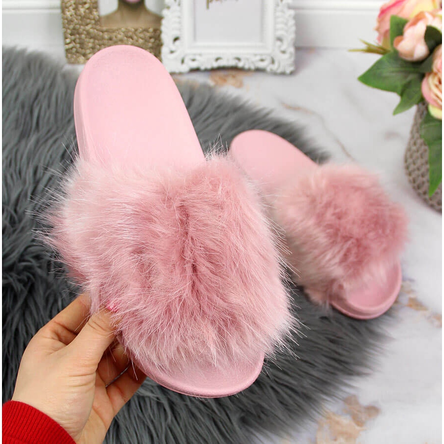 Details: Damenhausschuhe mit Fell helllila Msmg