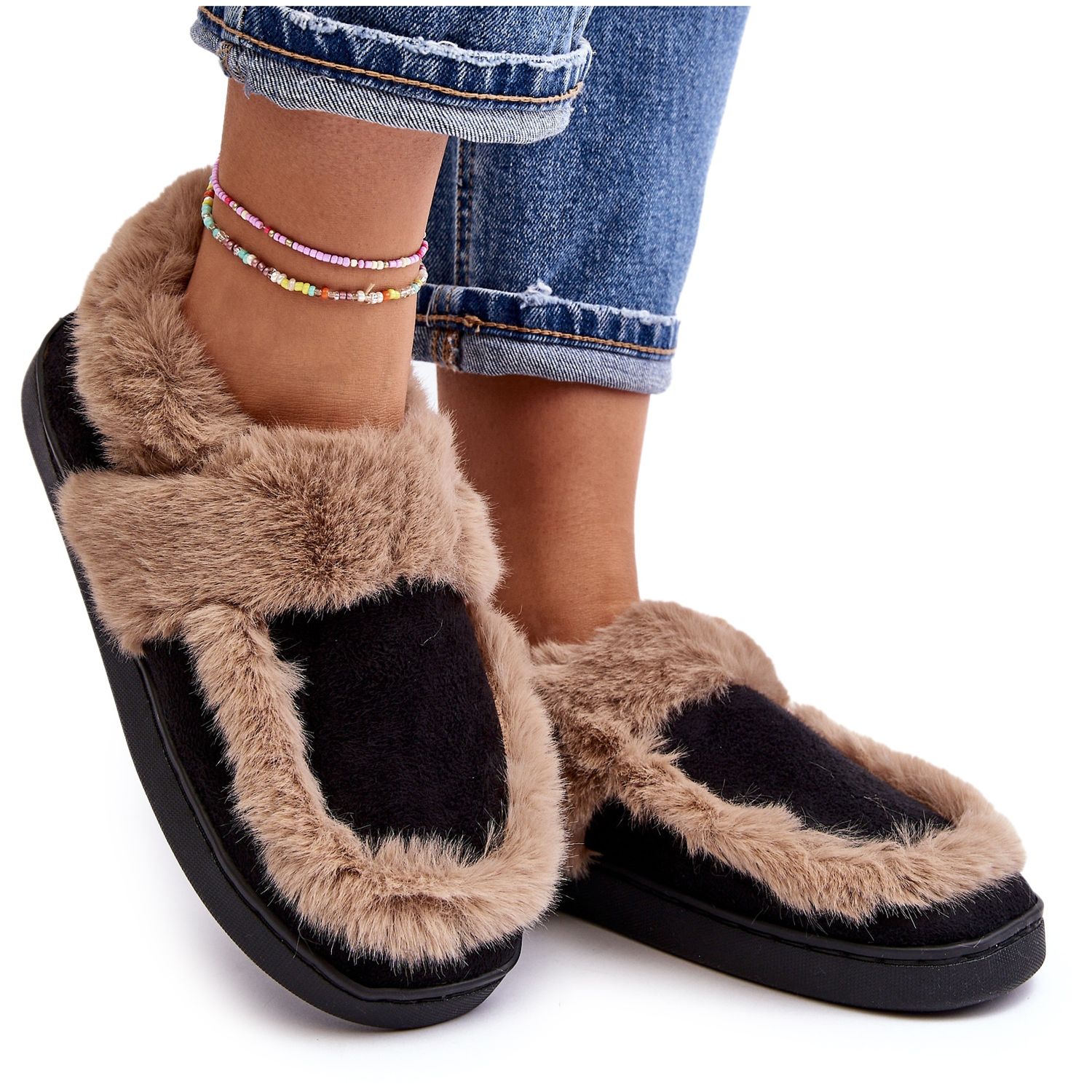 Inna marka Damenhausschuhe mit Fell Schwarz Sailey