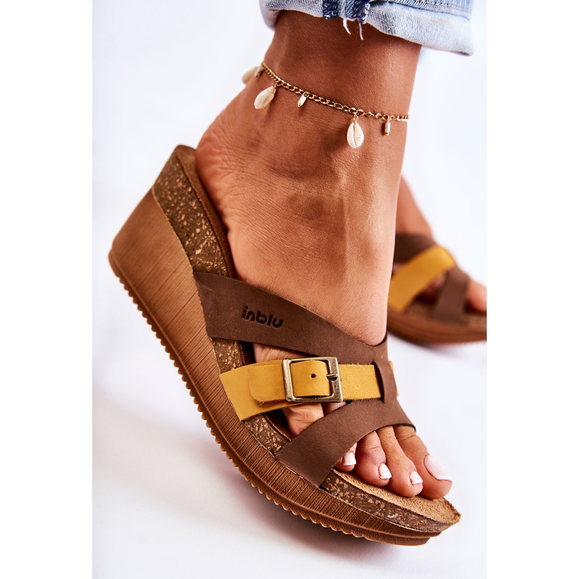 Details: Damenhausschuhe mit Keilabsatz Inblu EN000024 Braun-Gelb