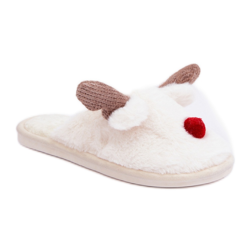 Details: Damenhausschuhe mit Rentiermotiv weiß