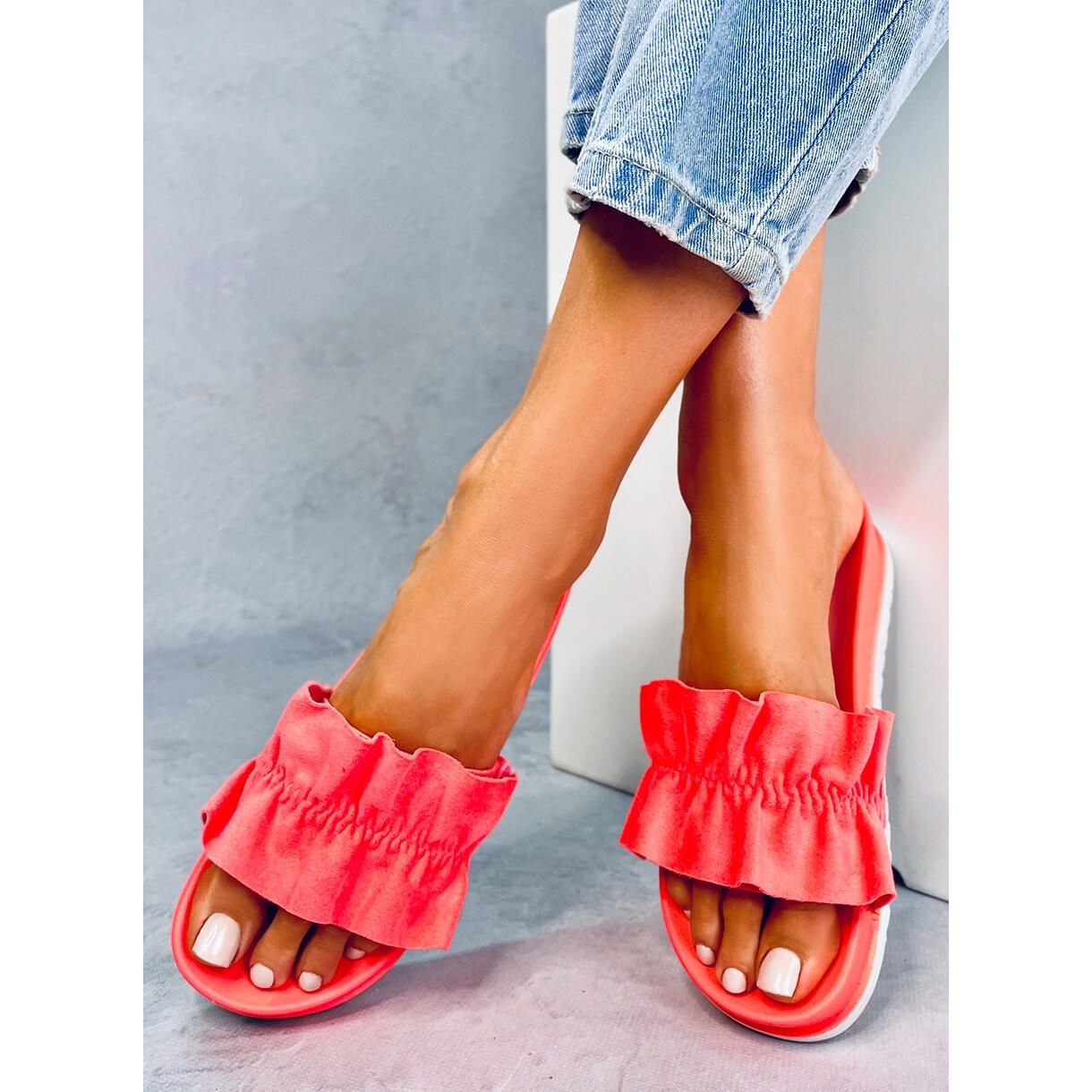 Details: Damenhausschuhe mit Rüschenkoralle 38862 Watermelon Red mehrfarbig orange