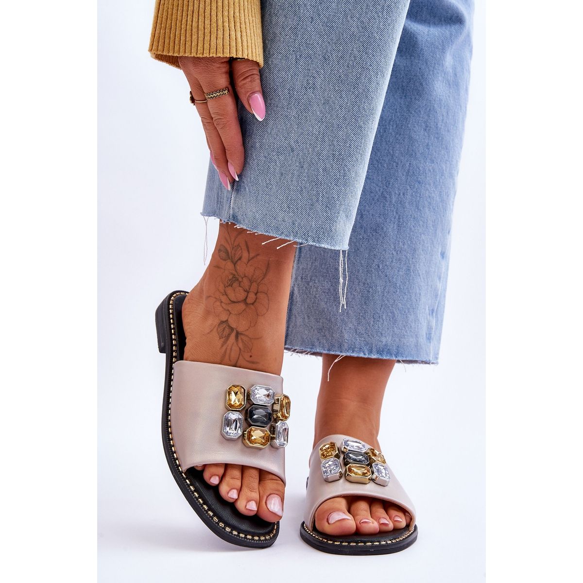 Details: Damenhausschuhe mit Steinen S.Barski KV-2775-31 Nude beige