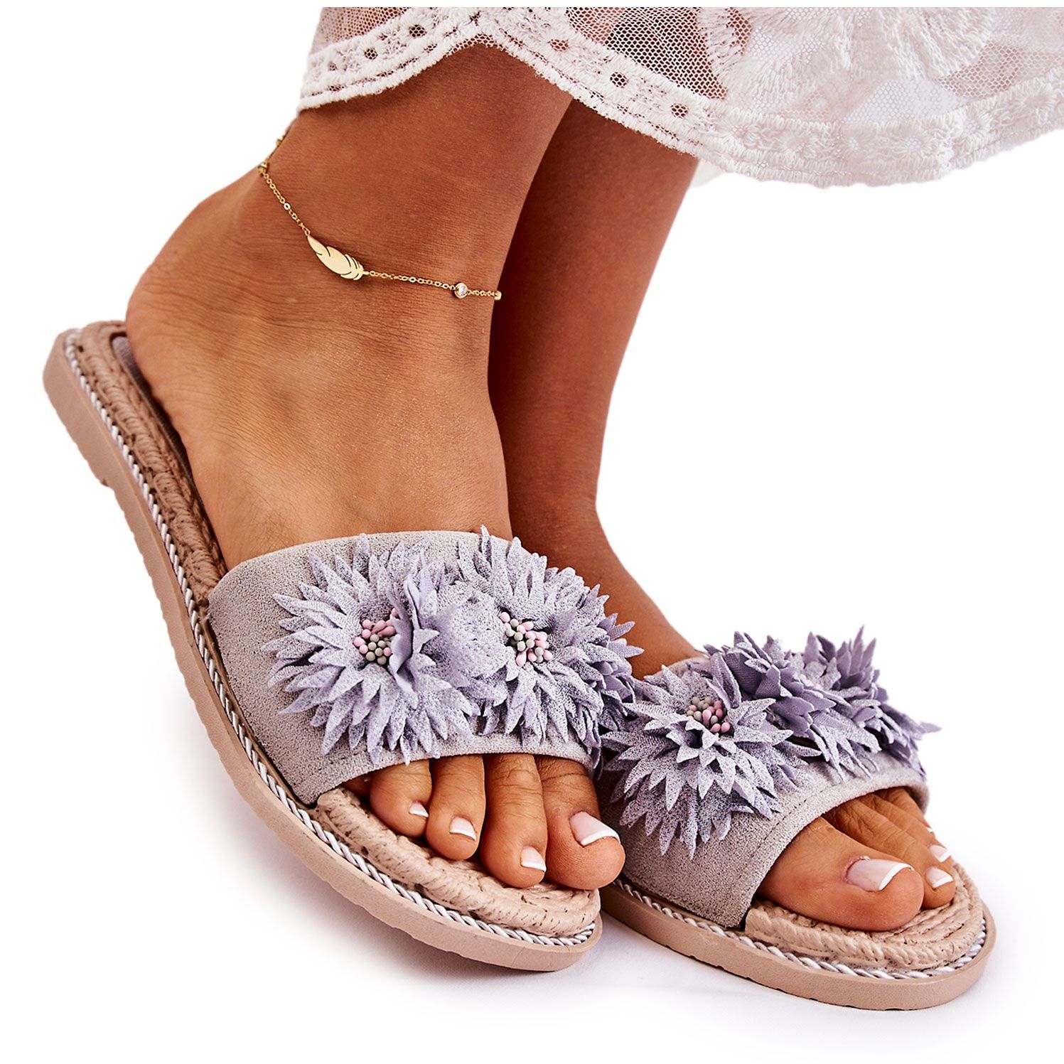 WJ1 WJ1 Damenhausschuhe mit Stoffblumen Grau Susana