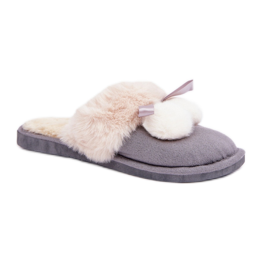 Details: Damenhausschuhe mit weichem Fell grau