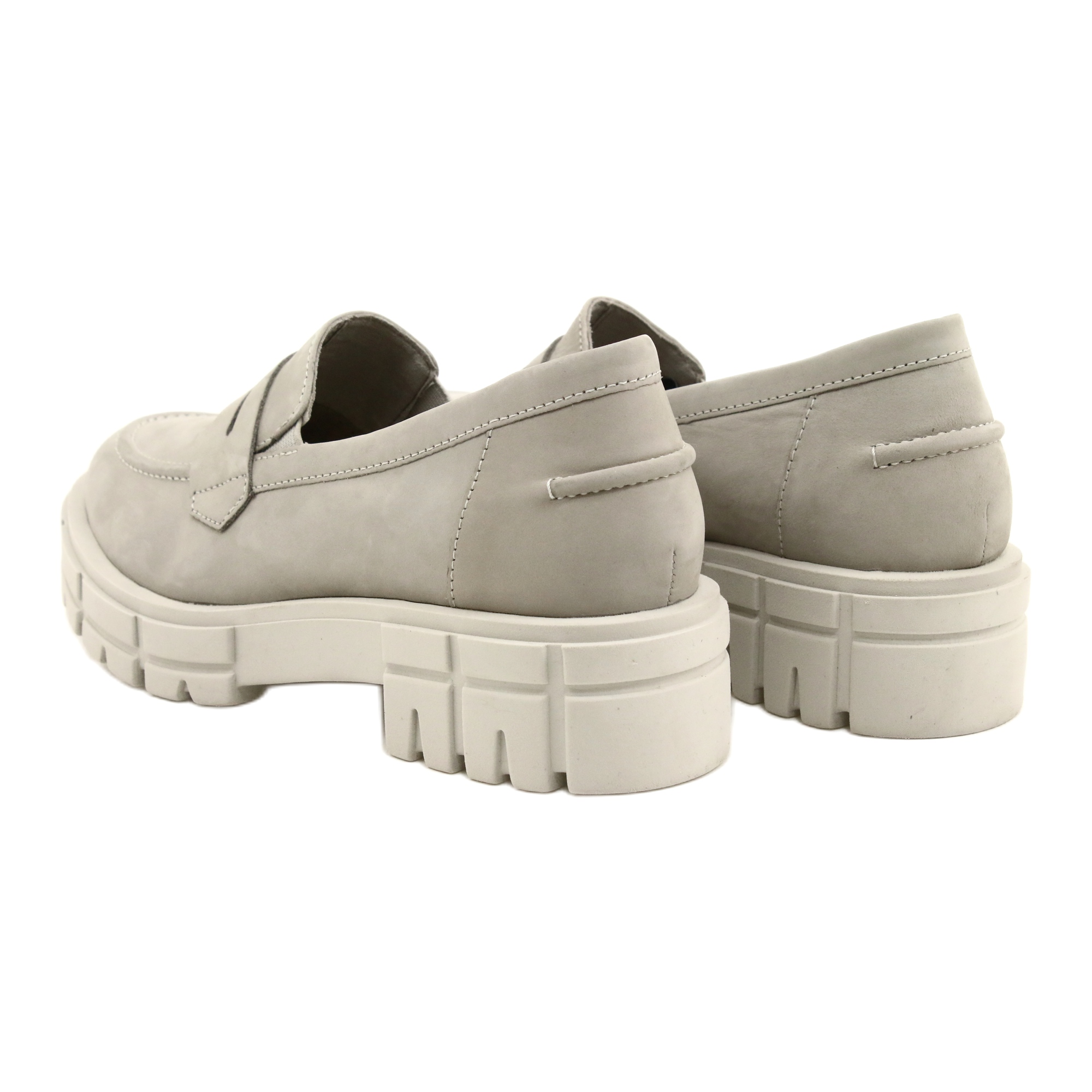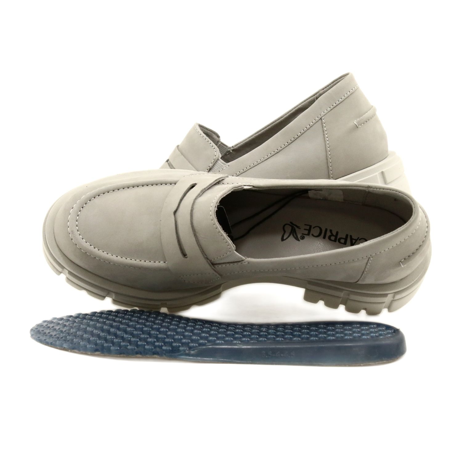 Die grauen Slipper der renommierten Caprice kombinieren Eleganz mit außergewöhnlichem Komfort. Sie bestehen aus natürlichen, sehr weichen Leder und sind sowohl bei der Arbeit als auch bei formellen Treffen und täglich perfekt. Der klassische, zeitlose Schnitt mit einer runden Nase verleiht ihnen einen universellen Charakter, und die stilvolle, leicht dickere Sohle (Höhe 4,2 cm) sorgt für Stabilität und subtile Erhöhung der Figur.