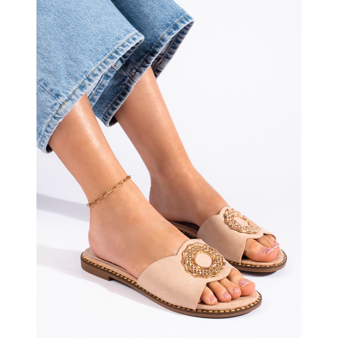 Details: Goodin Damenpantoffeln aus beigem Wildleder