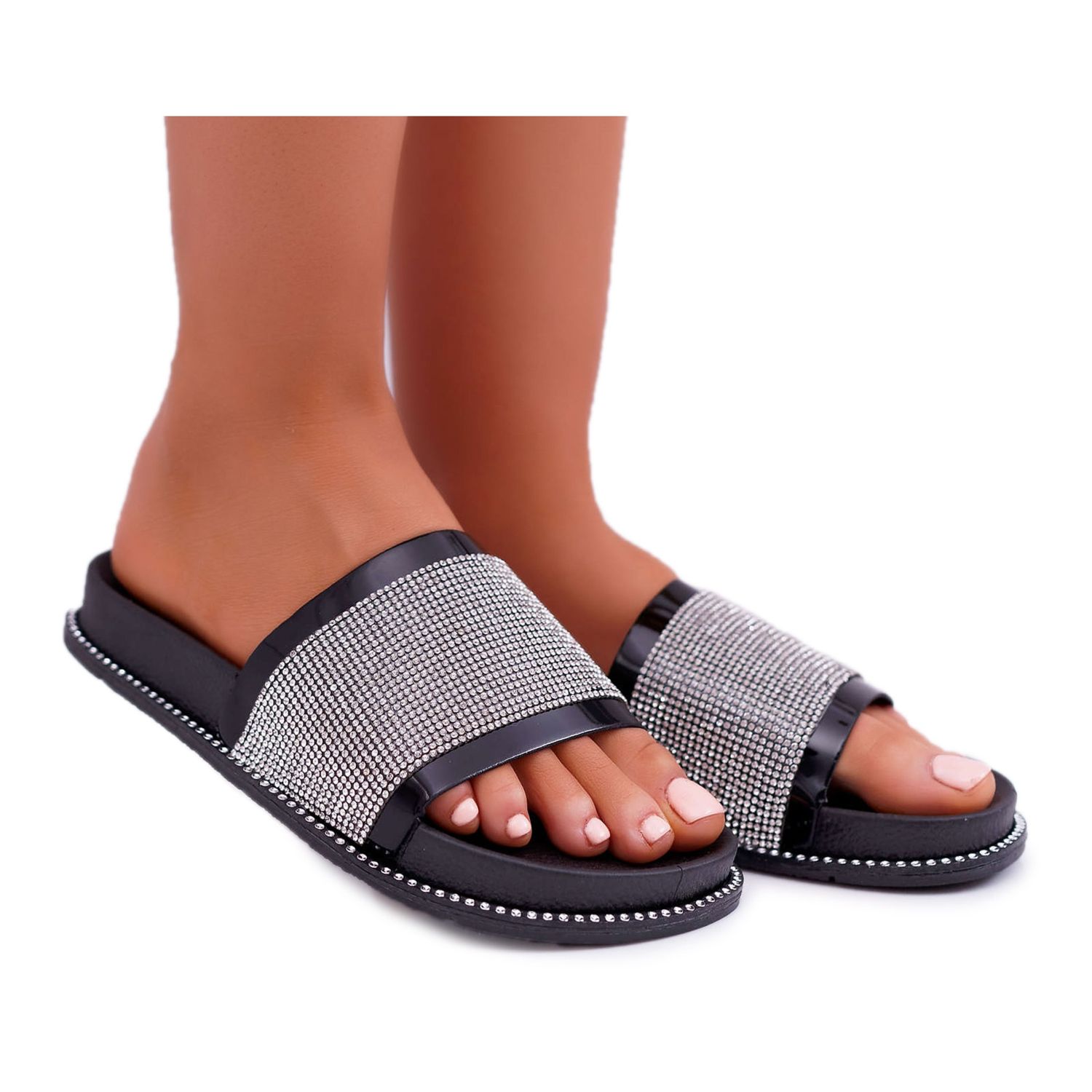 FRBS FRBS Damenpantoffeln, profiliert mit Zirkonia, Schwarz Rentre