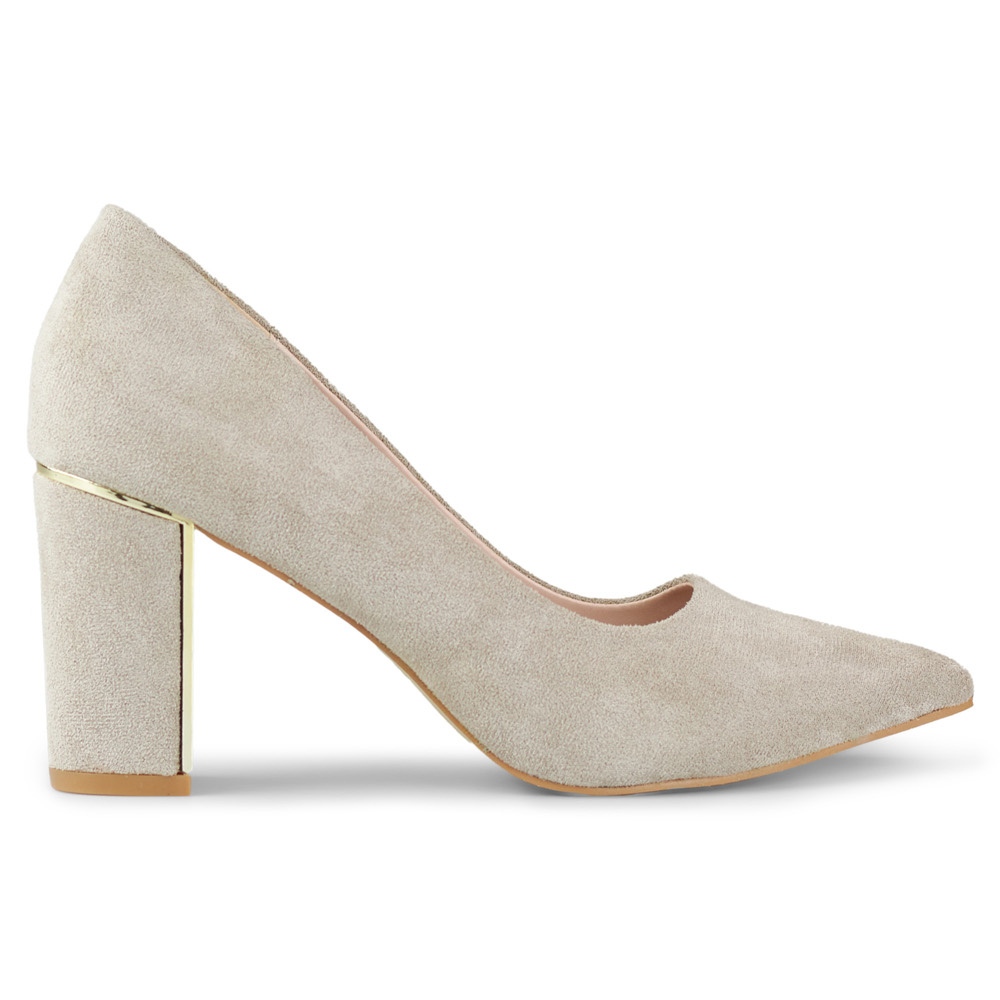 Das obere aus dauerhafte ökologische Wildleder verleiht den Schuhen ein subtiles, aber luxuriöses Aussehen, und die spitze Nase ermöglicht es Ihnen, die Eleganz der Figur zu betonen. Die Säulenhöhe von 8 cm sorgt für die richtige Höhe und fügt die Weiblichkeit hinzu, während der Komfort des ganzen Tages beibehält. Der natürliche Ledereinsatz kümmert sich um Fußlüftung und vermittelt in jeder Situation ein angenehmes Gefühl.