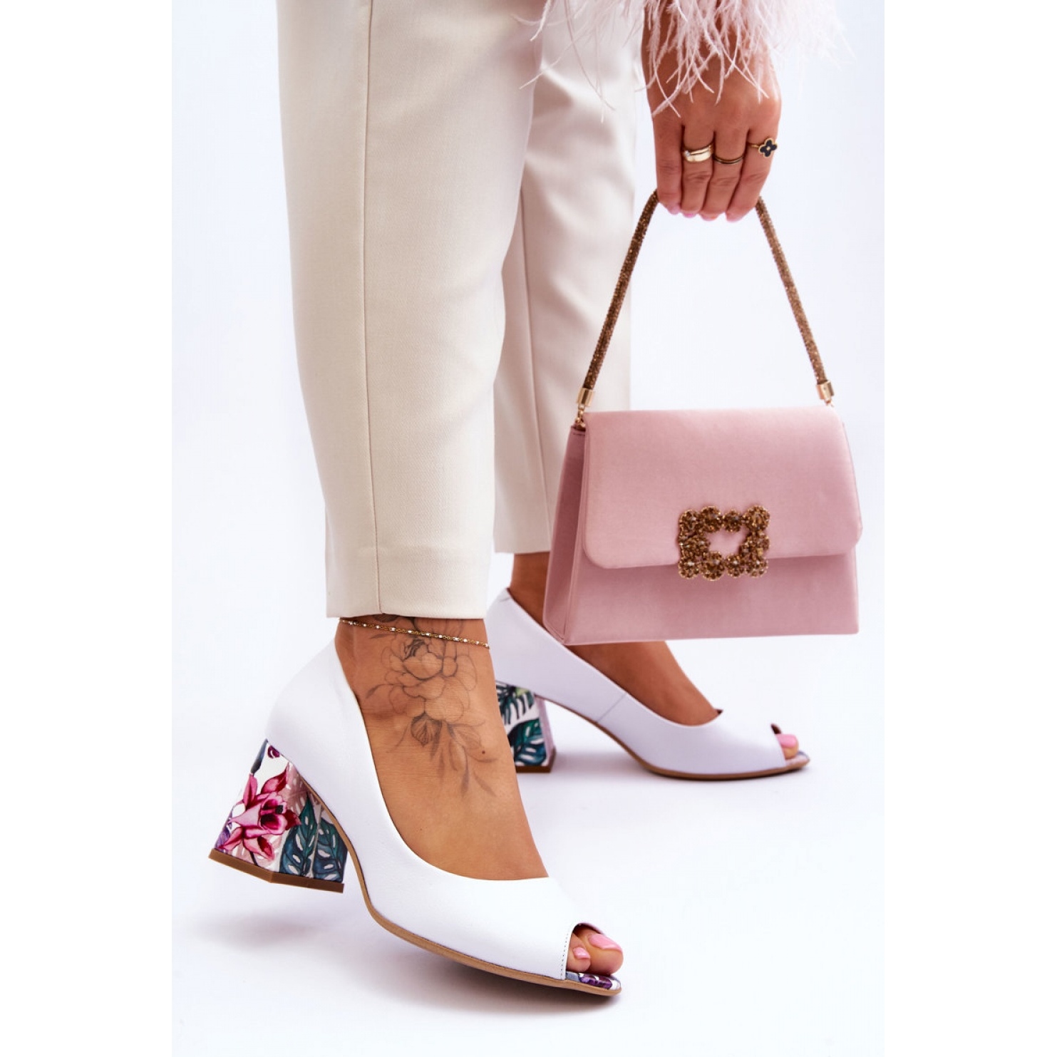 Frauenpumpen mit einem dekorativen Fersen -Weiß -Groch sind eine gute Wahl für jede elegante Frau, die Stil mit Komfort kombinieren möchte. Diese Pumpen bestehen aus hochwertigem natürlichen Leder und beeindrucken die Klassiker mit modernem Design. Der entdeckte Mandelzeh sorgt für Leichtigkeit, und die subtile weiße Farbe macht sie zu einer idealen Ergänzung zu Frühlings- und Sommerstilisationen.