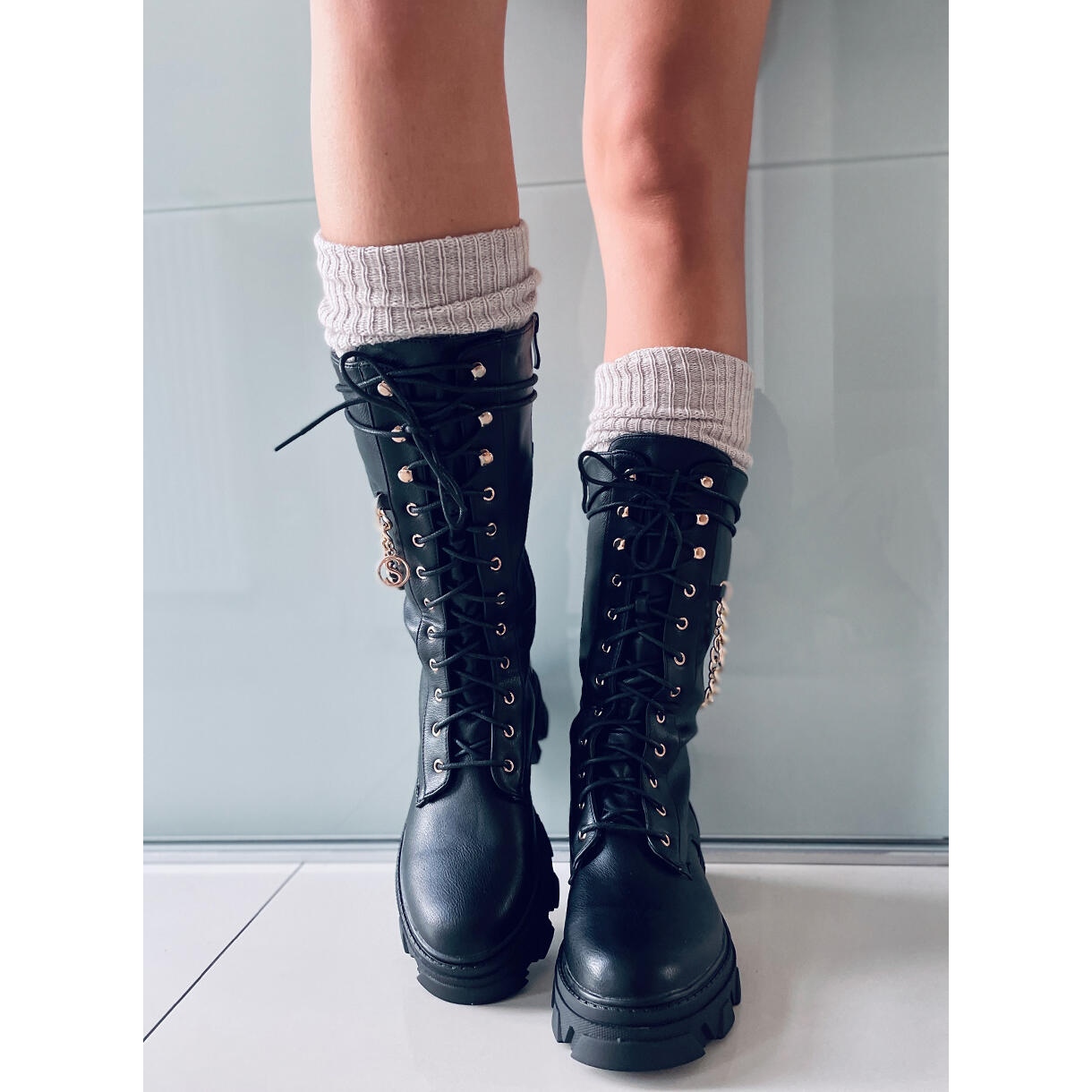 Wir präsentieren die Damenstiefel BM Totah Black – ein ideales Angebot für Frauen, die modisches Design mit Tragekomfort verbinden möchten. Diese Schnürstiefel mit hoher Sohle zeichnen sich nicht nur durch ihren modernen Schnitt aus, sondern auch durch eine stilvolle Goldkette, die ihnen Eleganz und Charakter verleiht.