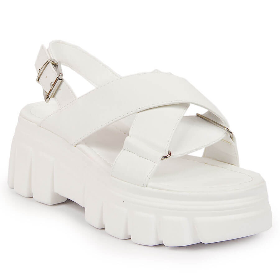 Jezzi Damensandalen auf dem weißen Jezzi-Plateau