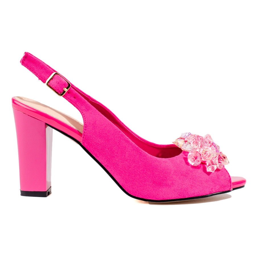 SHELOVET Damensandalen auf der Post mit Kristallen Shelovet rosa Wildleder